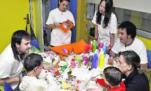 El objetivo de este programa –en el que participa un total de 52 voluntarios– es generar un ambiente positivo «que compense los desajustes afectivos» que sufren los niños en el hospital (normas y horarios diferentes a los habituales, aparatos raros, largos espacios de tiempo vacío, pruebas diagnósticas...). «La actividad lúdica sirve al menos de válvula de escape» y además, si son algo mayores, les permite «relacionarse con otros niños en su misma situación». Porque, al final, las pastillas de buen rollo son también parte importante del tratamiento.