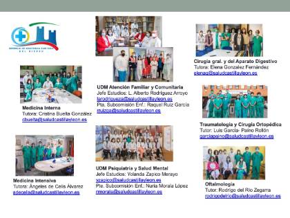 - Unidad Docente Multiprofesional de Atención Familiar y Comunitaria: 9 plazas MIR de Medicina Familiar y Comunitaria y 9 plazas EIR de Enfermería Familiar y Comunitaria