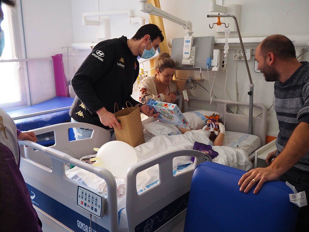 En su recorrido por las unidades de hospitalización y de UCI pediátrica y de psiquiatría infanto-juvenil, los miembros del club blanquivioleta han compartido un rato con los pacientes más jóvenes, repartiendo regalos, haciéndose fotos y firmando autógrafos con quienes así se lo han solicitado, incluidos familiares y profesionales, rompiendo así con la habitual monotonía de las estancias hospitalarias y acercando un poco más el espíritu de la Navidad que llega a las habitaciones del Clínico.