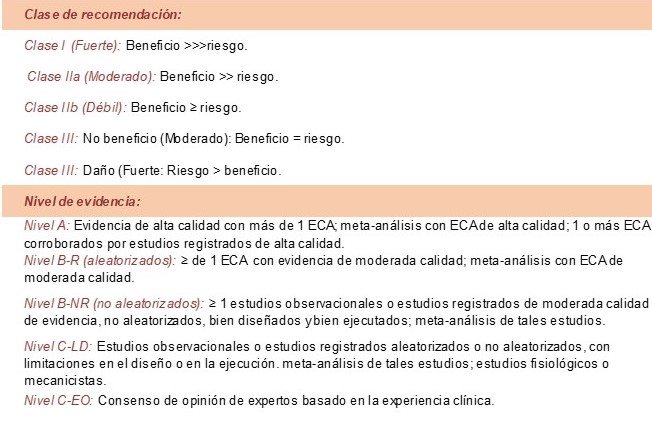 Clases de recomendación y niveles de evidencia de ACC/AHA