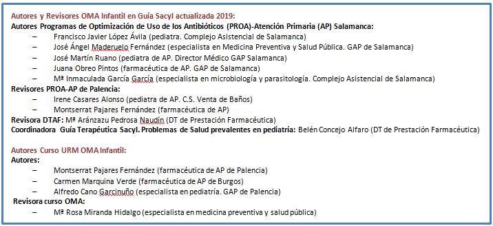 El módulo de formación de otitis media aguda (OMA) en pediatría se elaboró en 2009, dentro del proyecto de formación on-line en el Uso Racional del Medicamento.